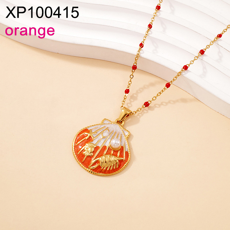 Level B Stainless Steel New Trendy Women Jewelry Pearl Style/Plastic Beads Summer beach Animal Orange Shell Golden Pendant