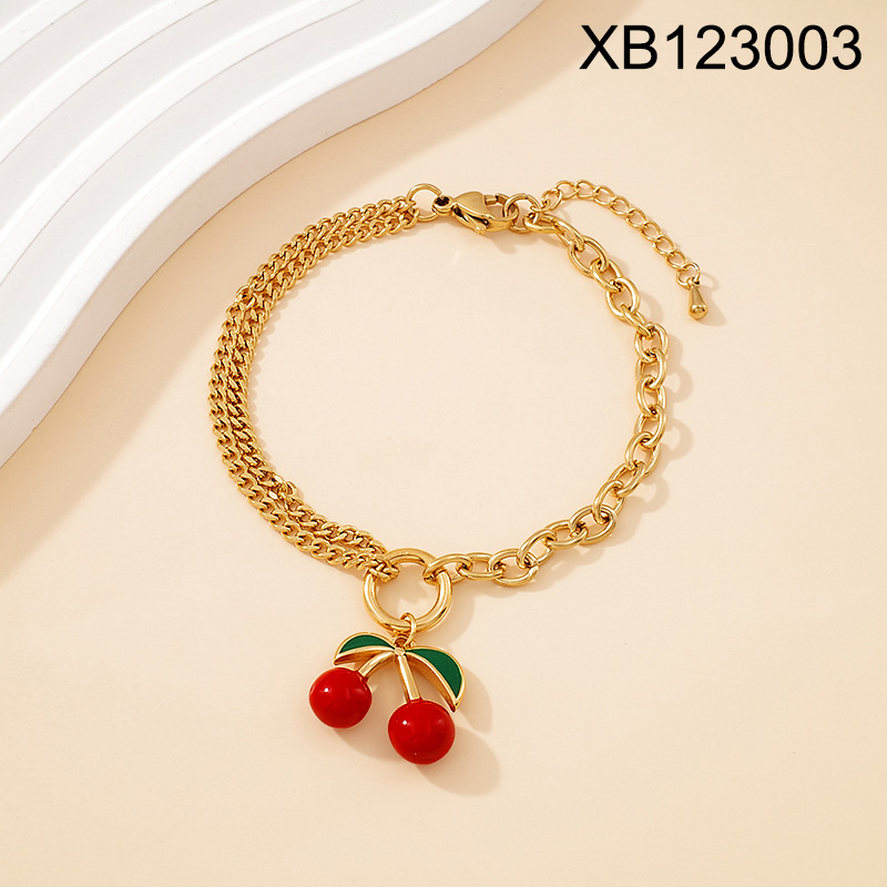 Level B Stainless Steel New Trendy Women Jewelry Summer fruit style Cherry Golden Bracelet