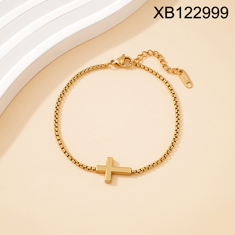 Level B Stainless Steel New Trendy Women Jewelry Cross Golden Bracelet