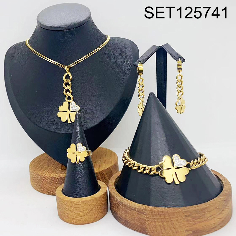 Level B Stainless Steel New Trendy Women Jewelry SYC Flower Golden 4pcs SET