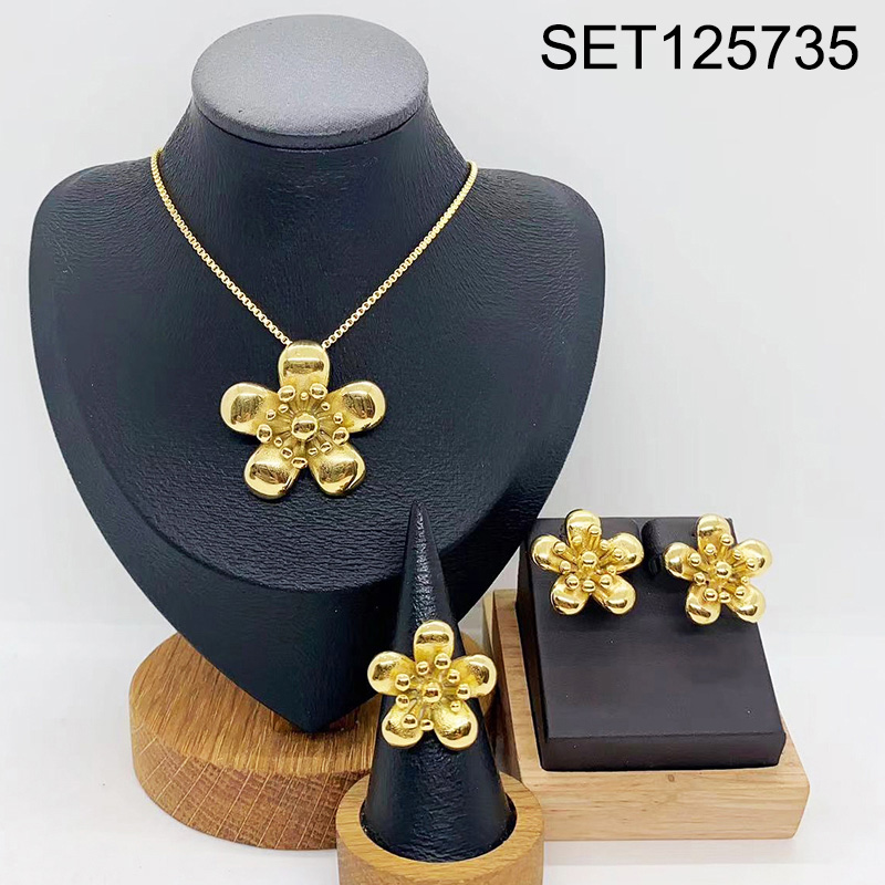 Level B Stainless Steel New Trendy Women Jewelry Flower Golden 3pcs SET
