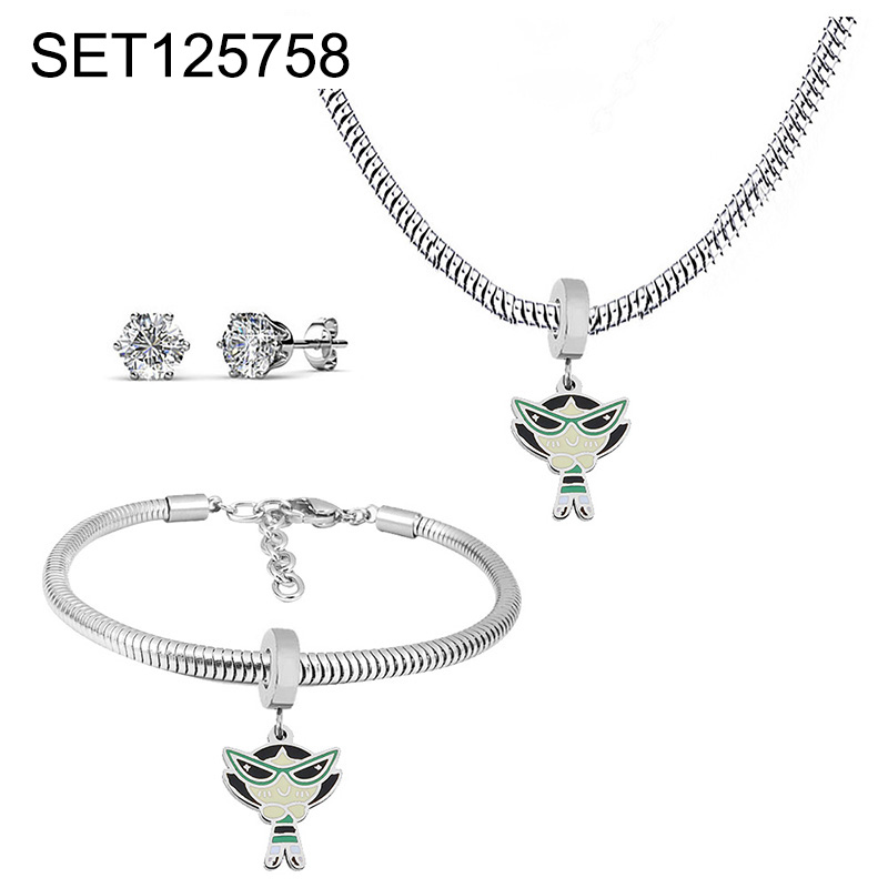 Level B Stainless Steel New Trendy Children Jewelry Drip Oil/Enamel Cartoon Steel color 3pcs SET