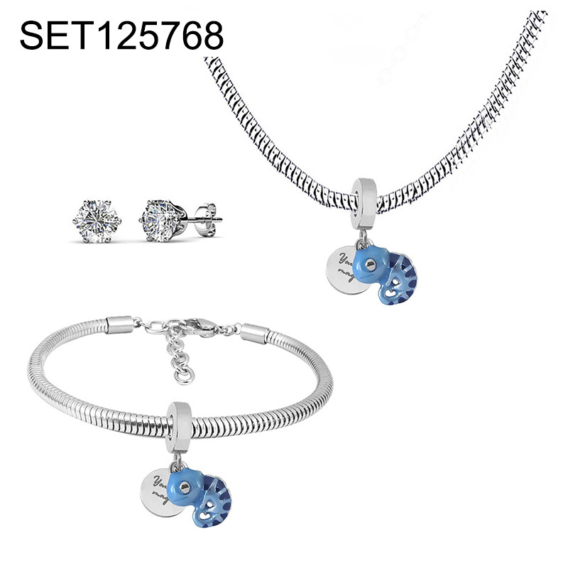 Level B Stainless Steel New Trendy Children Jewelry Drip Oil/Enamel Animal Chameleon Steel color 3pcs SET