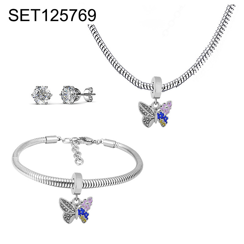 Level B Stainless Steel New Trendy Children Jewelry Animal Butterfly Steel color 3pcs SET