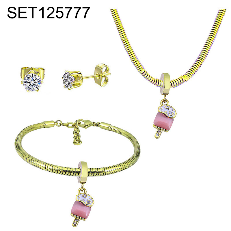 Level B Stainless Steel New Trendy Children Jewelry ice cream Golden 3pcs SET