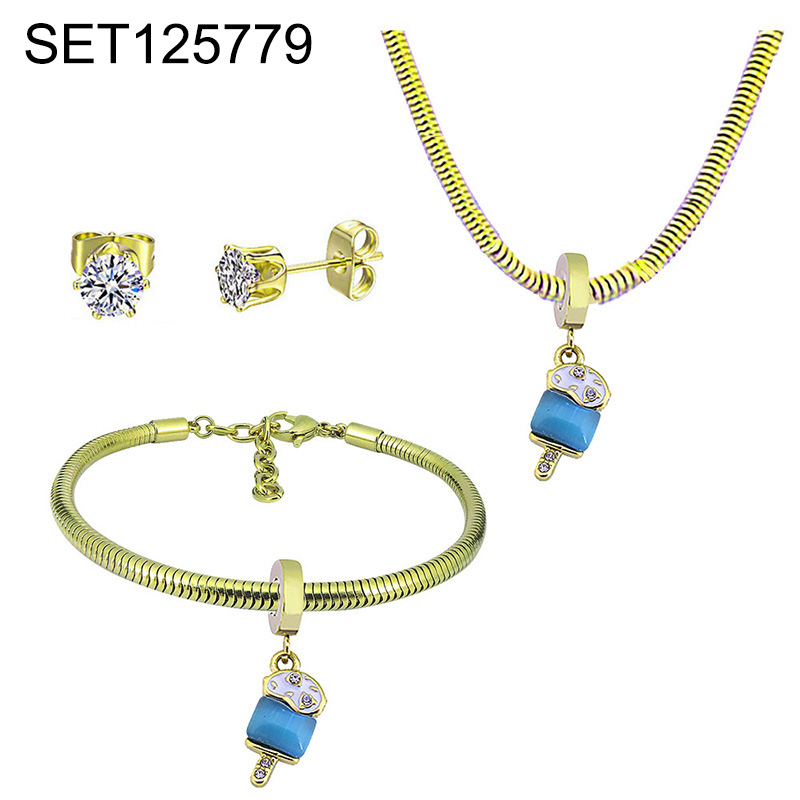 Level B Stainless Steel New Trendy Children Jewelry ice cream Golden 3pcs SET