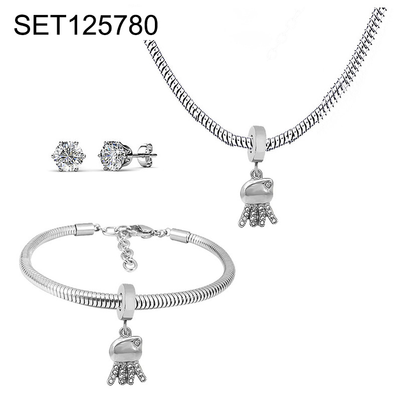 Level B Stainless Steel New Trendy Children Jewelry Summer beach Animal Octopus Steel color 3pcs SET