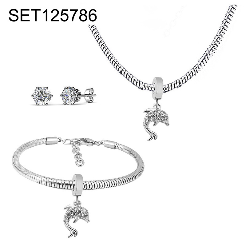 Level B Stainless Steel New Trendy Children Jewelry Summer beach Animal Dolphin Steel color 3pcs SET