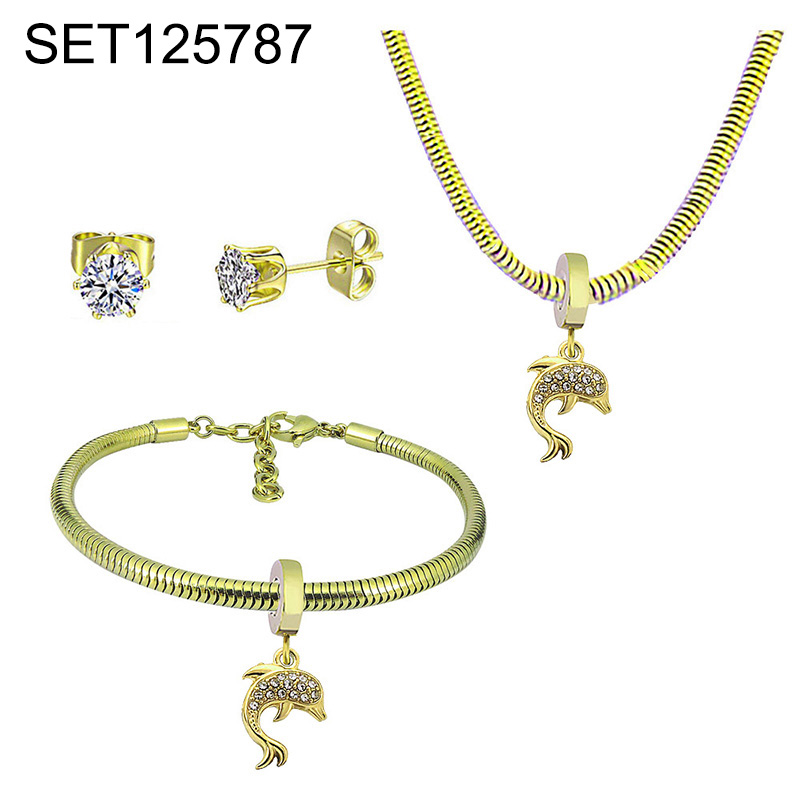 Level B Stainless Steel New Trendy Children Jewelry Summer beach Animal Dolphin Golden 3pcs SET