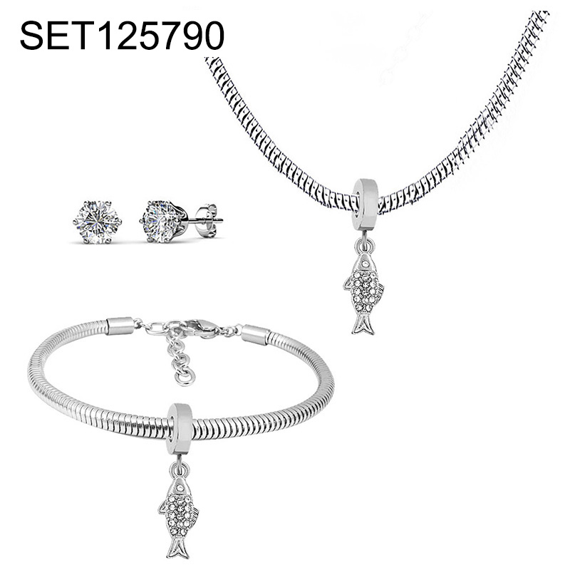 Level B Stainless Steel New Trendy Children Jewelry Summer beach Animal Fish Steel color 3pcs SET