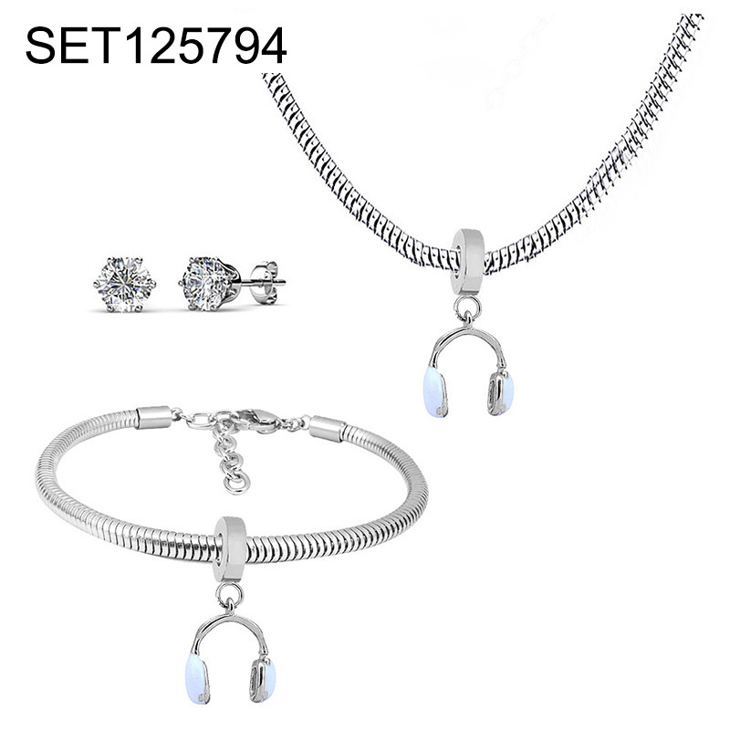 Level B Stainless Steel New Trendy Children Jewelry Drip Oil/Enamel Earphones Steel color 3pcs SET