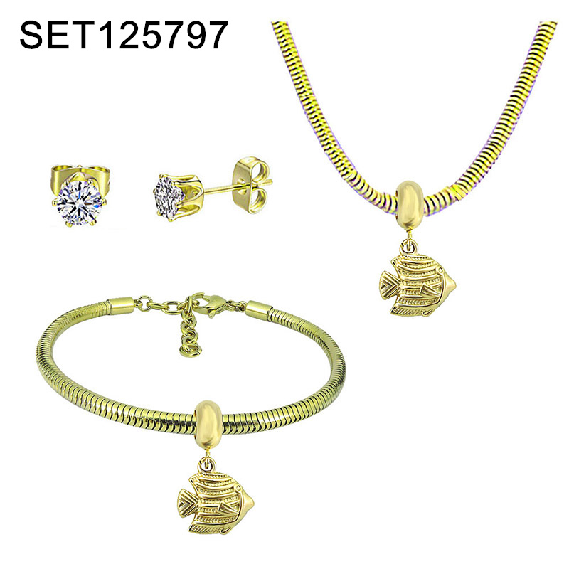 Level B Stainless Steel New Trendy Children Jewelry Summer beach Animal Fish Golden 3pcs SET