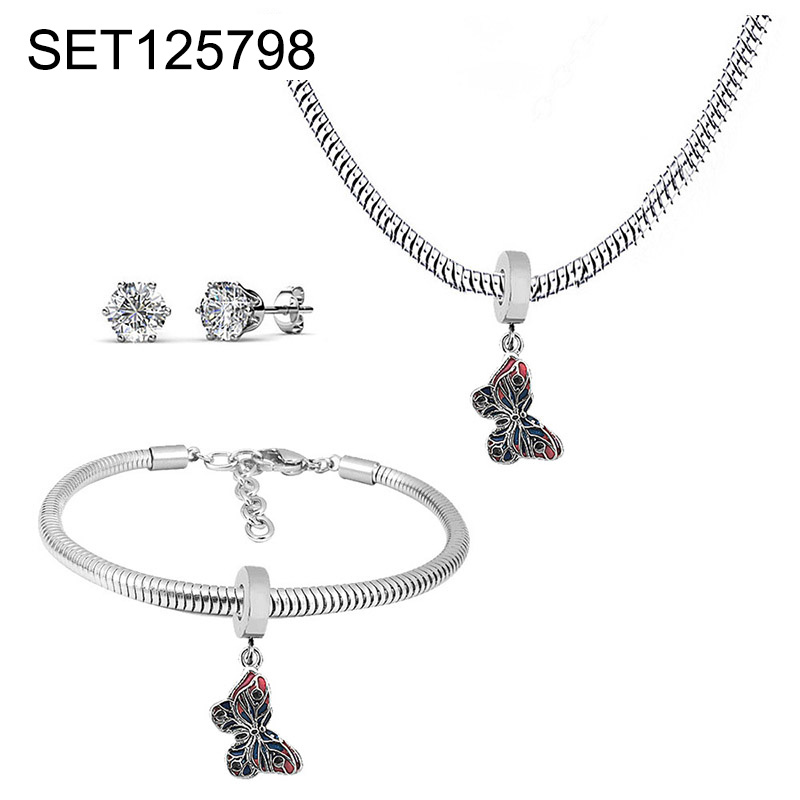 Level B Stainless Steel New Trendy Children Jewelry Drip Oil/Enamel Animal Butterfly Steel color 3pcs SET