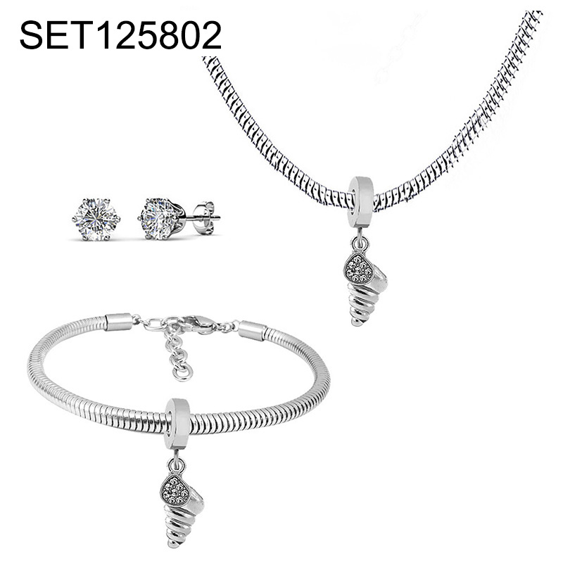 Level B Stainless Steel New Trendy Children Jewelry Summer beach Animal Conch Steel color 3pcs SET