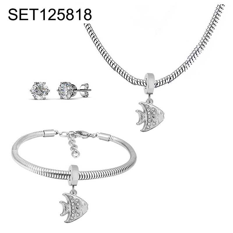 Level B Stainless Steel New Trendy Children Jewelry Summer beach Animal Fish Steel color 3pcs SET