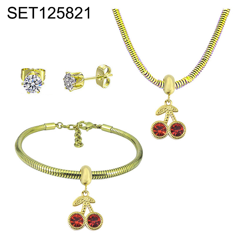 Level B Stainless Steel New Trendy Children Jewelry Summer fruit style Cherry Golden 3pcs SET