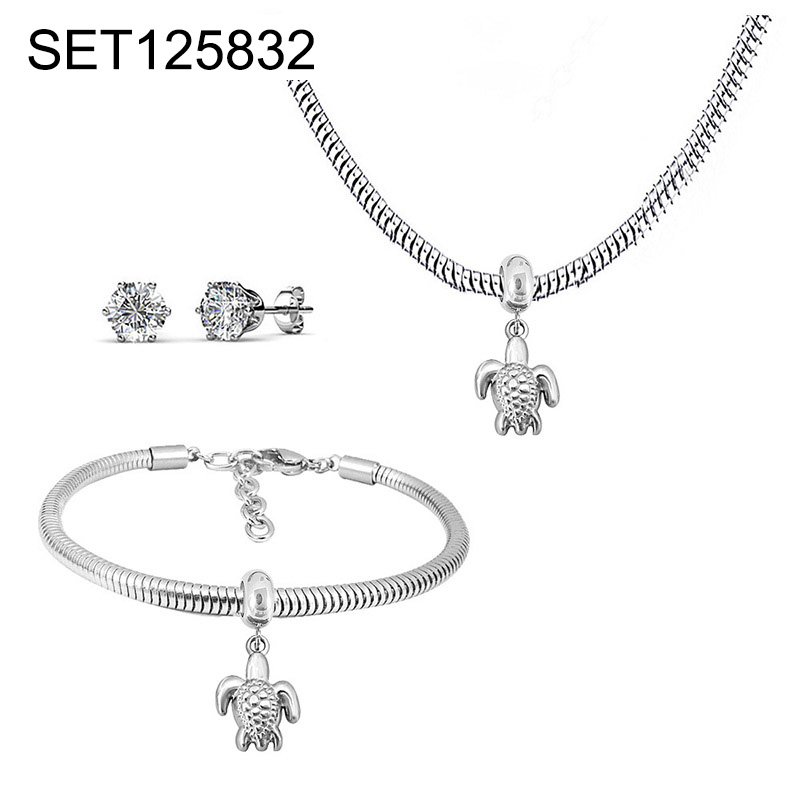 Level B Stainless Steel New Trendy Children Jewelry Summer beach Animal Turtle Steel color 3pcs SET