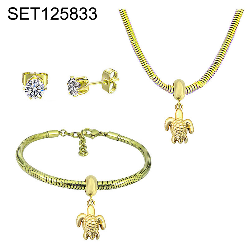 Level B Stainless Steel New Trendy Children Jewelry Summer beach Animal Turtle Golden 3pcs SET