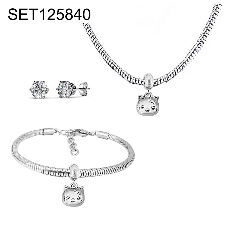 Home > Level B Stainless Steel New Trendy Children Jewelry Animal cat Steel color 3pcs SET