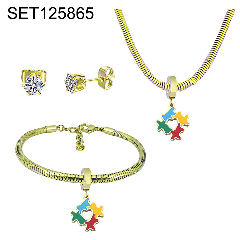Level B Stainless Steel New Trendy Children Jewelry Drip Oil/Enamel Jigsaw puzzle Golden 3pcs SET