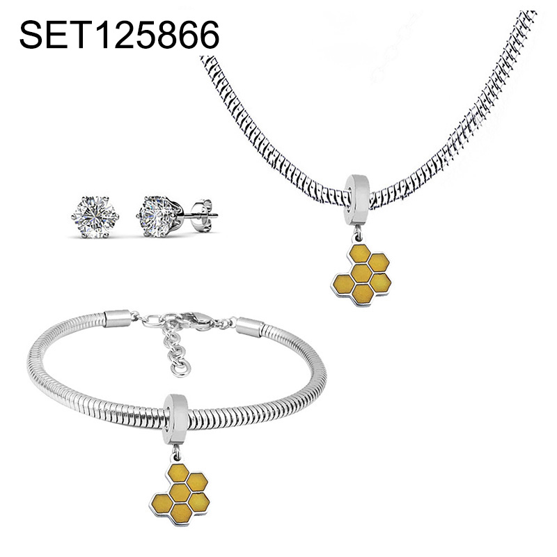 Home > Level B Stainless Steel New Trendy Children Jewelry Drip Oil/Enamel Honeycomb Steel color 3pcs SET