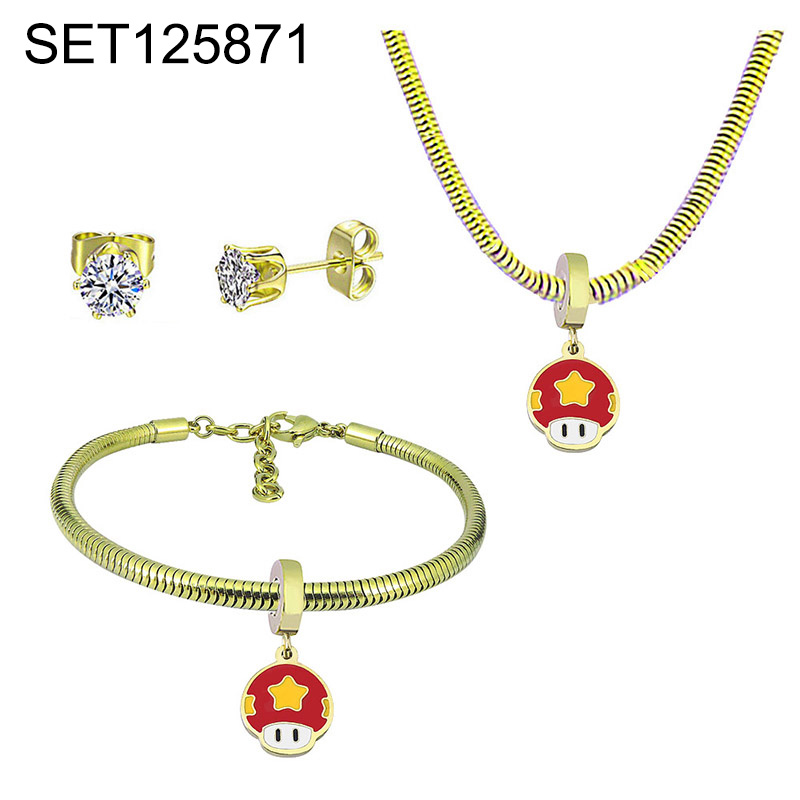 Level B Stainless Steel New Trendy Children Jewelry Drip Oil/Enamel Cartoon Golden 3pcs SET