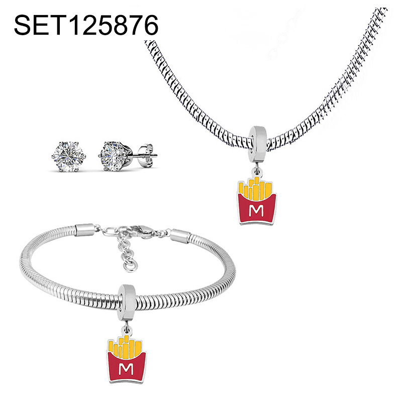 Level B Stainless Steel New Trendy Children Jewelry Drip Oil/Enamel French Fries Steel color 3pcs SET