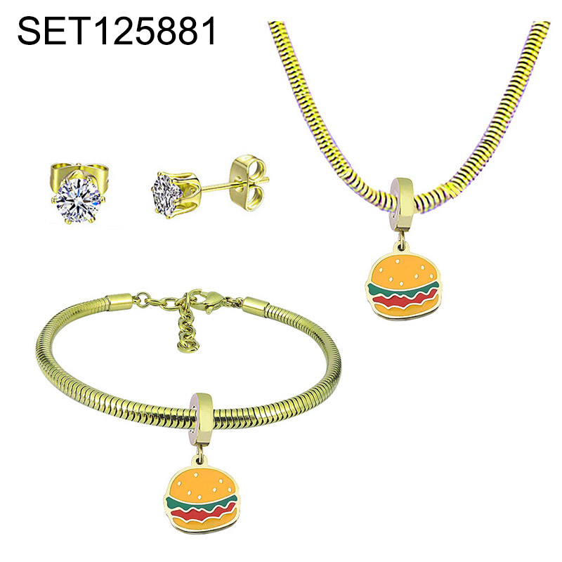 Level B Stainless Steel New Trendy Children Jewelry Drip Oil/Enamel Hamburger Golden 3pcs SET