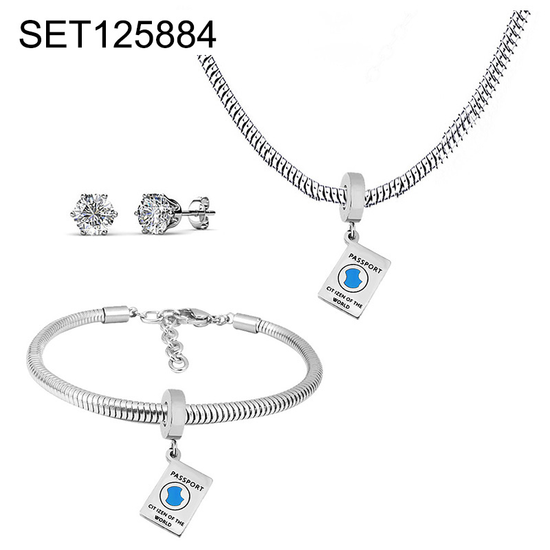 Level B Stainless Steel New Trendy Children Jewelry Drip Oil/Enamel Passport Steel color 3pcs SET