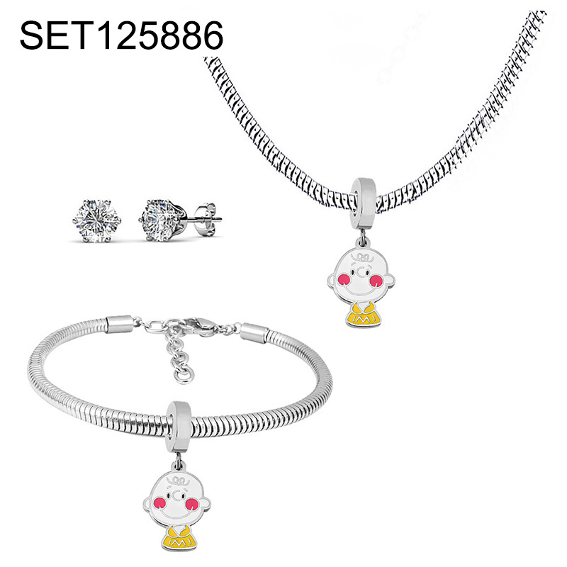 Level B Stainless Steel New Trendy Children Jewelry Drip Oil/Enamel Cartoon Baby Steel color 3pcs SET