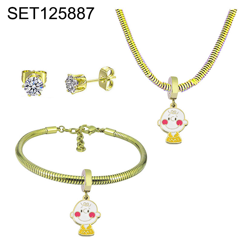 Level B Stainless Steel New Trendy Children Jewelry Drip Oil/Enamel Cartoon Baby Golden 3pcs SET