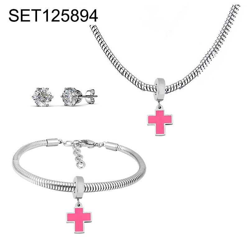 Home > Level B Stainless Steel New Trendy Children Jewelry Drip Oil/Enamel Cross Steel color 3pcs SET