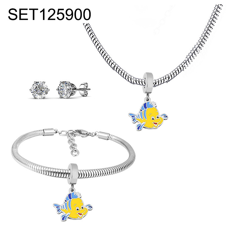 Home > Level B Stainless Steel New Trendy Children Jewelry Drip Oil/Enamel Summer beach Animal Fish Steel color 3pcs SET