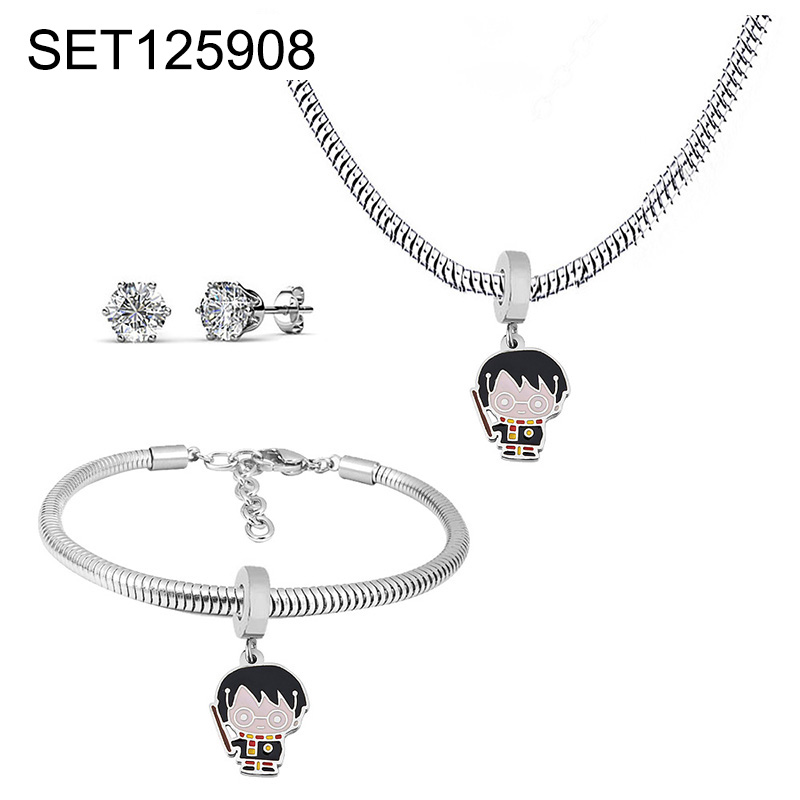 Level B Stainless Steel New Trendy Children Jewelry Drip Oil/Enamel Boy Steel color 3pcs SET