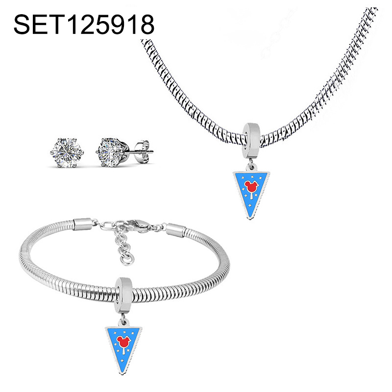 Level B Stainless Steel New Trendy Children Jewelry Drip Oil/Enamel Triangle Steel color 3pcs SET