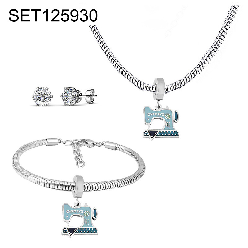 Level B Stainless Steel New Trendy Children Jewelry Drip Oil/Enamel Sewing Machine Steel color 3pcs SET