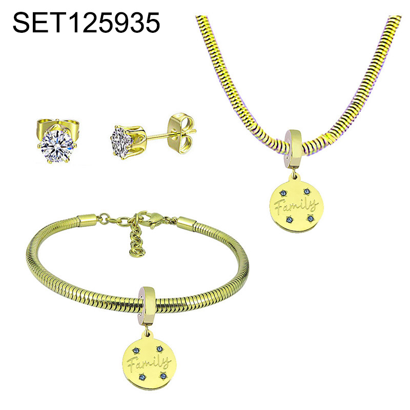 Level B Stainless Steel New Trendy Children Jewelry Family Golden 3pcs SET
