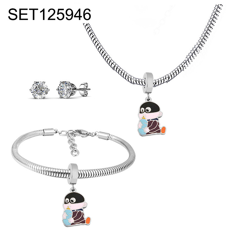 Level B Stainless Steel New Trendy Children Jewelry Drip Oil/Enamel Cartoon Steel color 3pcs SET