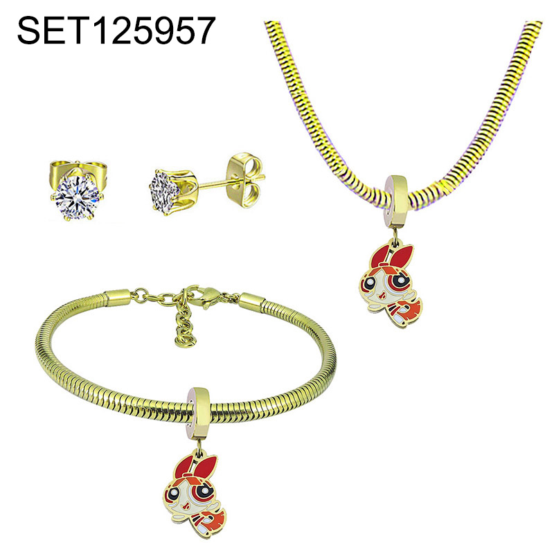 Level B Stainless Steel New Trendy Children Jewelry Drip Oil/Enamel Cartoon Golden 3pcs SET