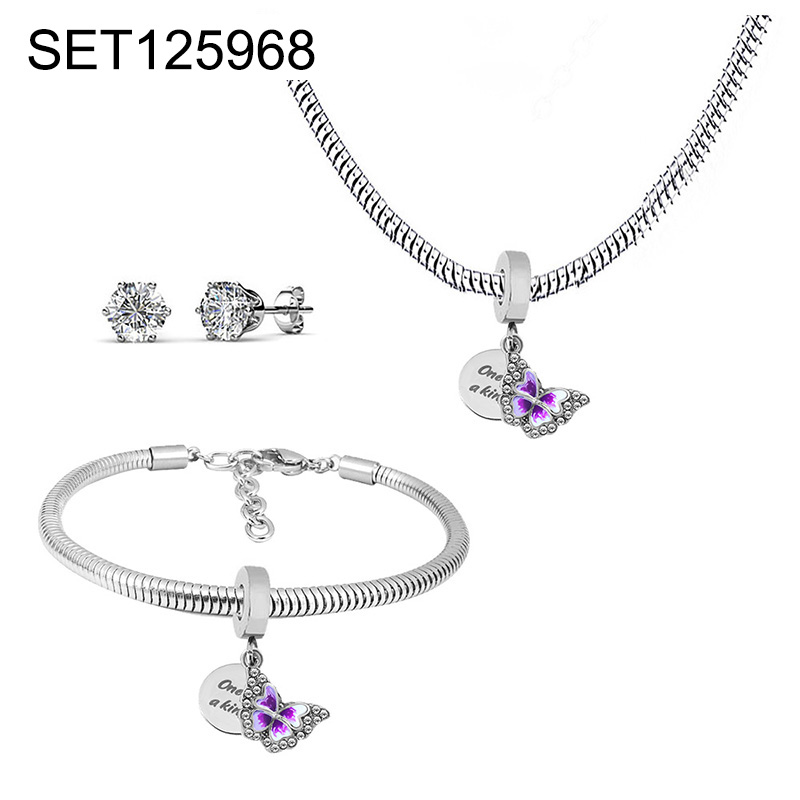 Level B Stainless Steel New Trendy Children Jewelry Drip Oil/Enamel Animal Butterfly Steel color 3pcs SET