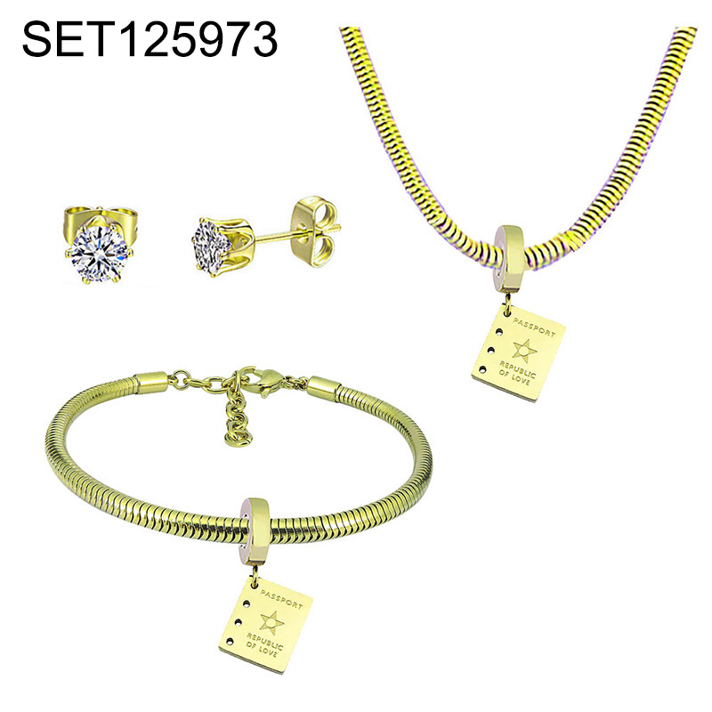 Level B Stainless Steel New Trendy Children Jewelry Passport Golden 3pcs SET