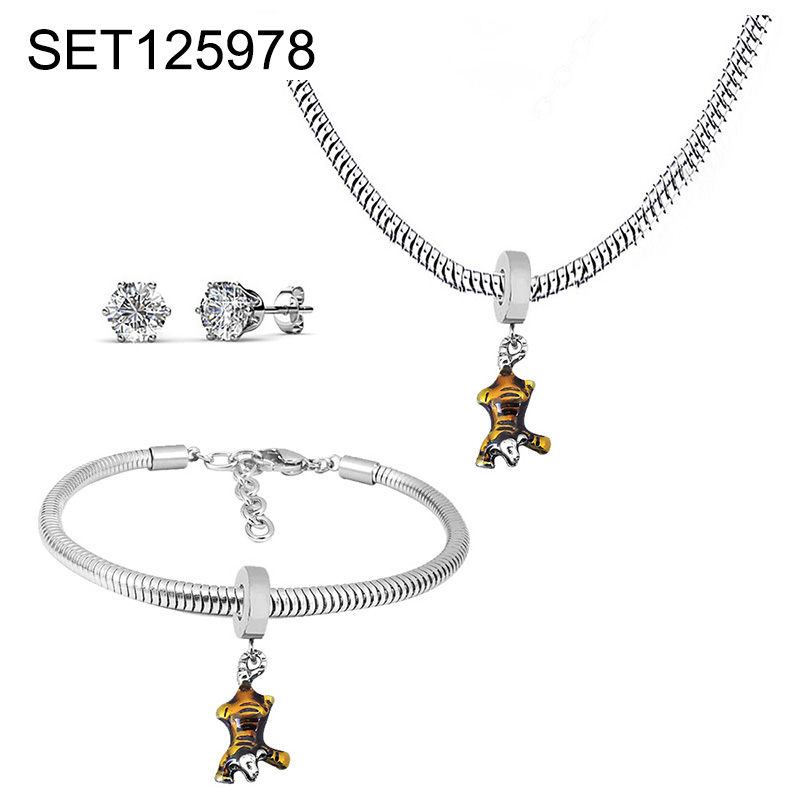 Home > Level B Stainless Steel New Trendy Children Jewelry Drip Oil/Enamel Animal Steel color 3pcs SET