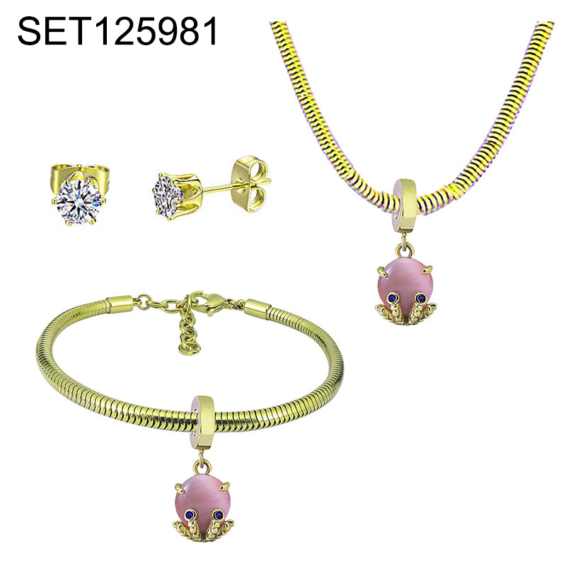 Level B Stainless Steel New Trendy Children Jewelry Summer beach Animal Octopus Golden 3pcs SET
