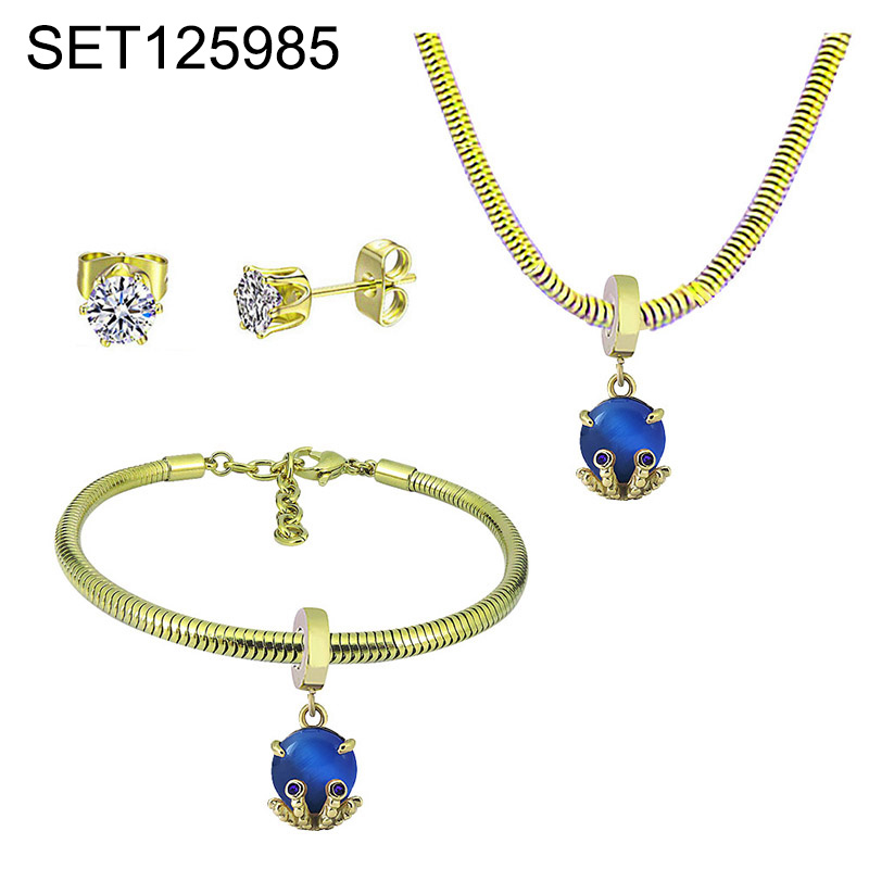 Level B Stainless Steel New Trendy Children Jewelry Summer beach Animal Octopus Golden 3pcs SET