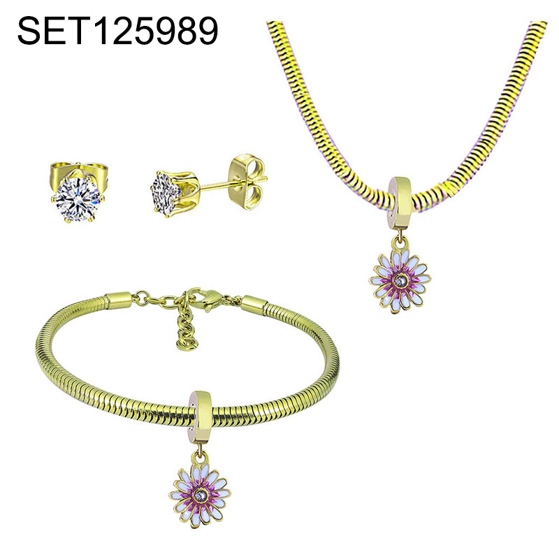 Level B Stainless Steel New Trendy Children Jewelry Drip Oil/Enamel Flower Golden 3pcs SET