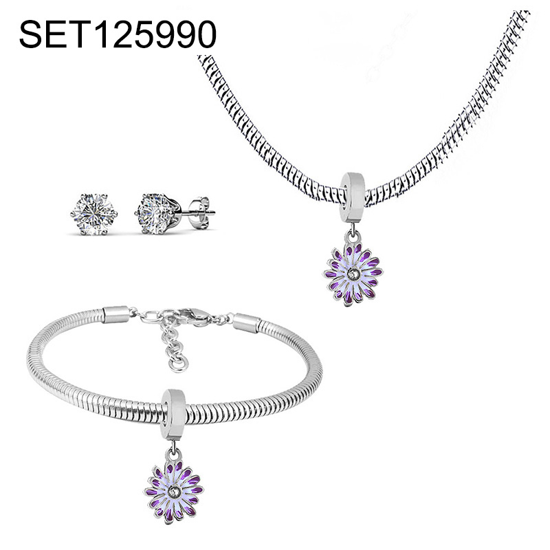 Level B Stainless Steel New Trendy Children Jewelry Drip Oil/Enamel Flower Steel color 3pcs SET