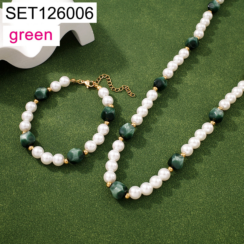 Level C Stainless Steel New Trendy Women Jewelry Pearl Style/Plastic Beads Golden Chain SET