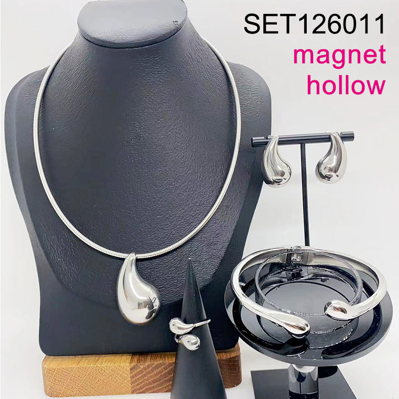 Home > Level B Stainless Steel New Trendy Women Jewelry Hollow Water Drip Steel color Magnet buckle 4pcs SET