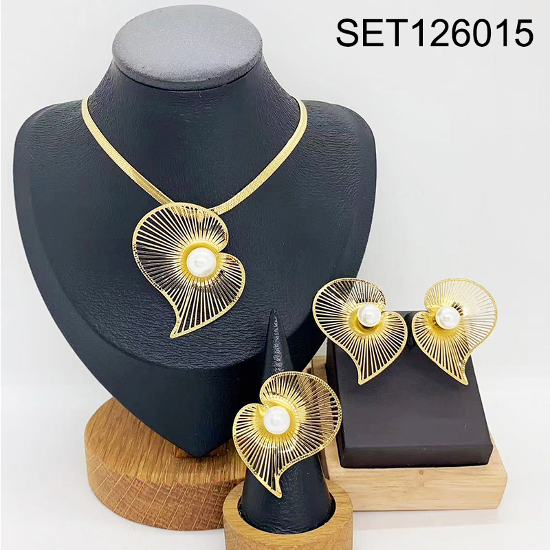 Level B Stainless Steel New Trendy Women Jewelry Pearl Style/Plastic Beads Heart Golden 3pcs SET