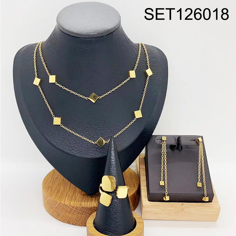 Level B Stainless Steel New Trendy Women Jewelry Two Layers Chain Square Golden 3pcs SET